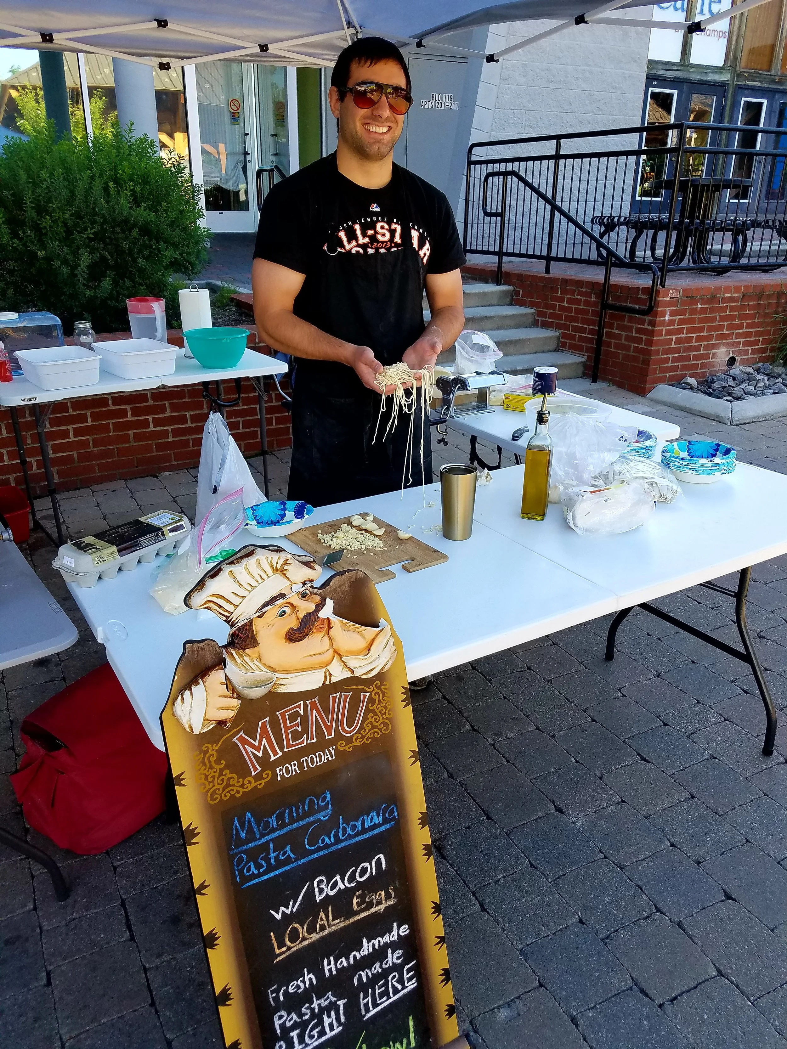 Hand made fresh pasta prepared onsite at the Blacksburg Farmers Market on Saturdays March-October!